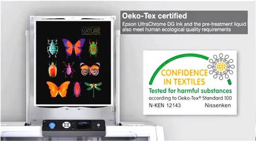 第三:安全可靠:愛普生活的色彩DG涂料墨水通過了Oeko-tex Standard 100的第一級(jí)別認(rèn)證(Report no.N-KEN12143),可以用來制作嬰兒及倆歲以下兒童服裝的織物,原材料和附件,令經(jīng)營(yíng)者可以放心的生產(chǎn),令最終用戶可以安心的使用。