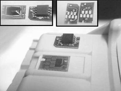 EPSON的打印機(jī)在墨盒上幾乎都裝有IC智能芯片,記錄墨水使用量,那么在打印機(jī)顯示墨盡以后就會(huì)停止工作,要使它工作就要將IC智能芯片恢復(fù)到初始狀態(tài)。目前恢復(fù)的辦法,一是使用恢復(fù)軟件,比如最有影響力的俄羅斯SSC Service Utility軟件,現(xiàn)已經(jīng)升級(jí)到了v3.71版本(下載網(wǎng)站:http://www.ssclg.com/epson.shtml)二是將墨盒從打印機(jī)中取出,用解碼器刷新。這兩種辦法都比較麻煩,原因是軟件并不支持所有打印機(jī),取出墨盒刷新則更不好,所以連續(xù)供墨的內(nèi)墨盒上就用到了另外一個(gè)辦法——直接裝入永久芯片。永久芯片體積大小和原廠墨盒上的IC智能芯片幾乎一樣,但是在恢復(fù)的方法上有區(qū)別:裝入永久芯片的打印機(jī)在面板指示燈閃動(dòng)或者電腦提示“墨盡”后,有的是采用關(guān)閉打印機(jī)電源幾分鐘后再次開(kāi)啟電源、有的是采用更換墨盒的 “形式主義”方法后去操作面板按鍵,而內(nèi)墨盒根本就不用取出來(lái);有的是拔掉打印機(jī)電源插頭,用斷電辦法就可以讓永久芯片恢復(fù),這個(gè)時(shí)候在電腦中查看剩余墨水就 “滿”了,打印機(jī)就可以繼續(xù)工作了。